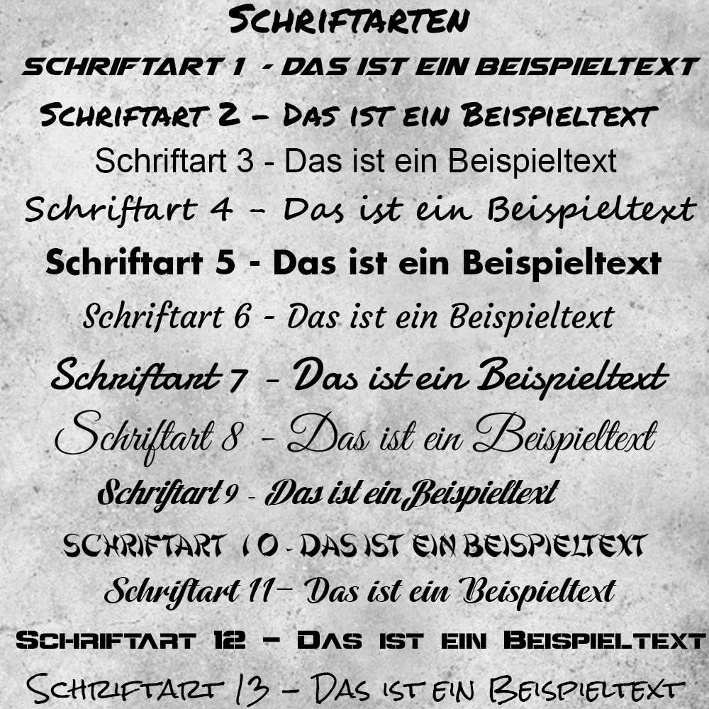 - Viele verschiedene Farben, Größen und Schriftarten zur Auswahl - Auf Anfrage auch gerne mehr